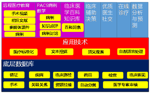 依托于方正阿帕比醫(yī)藥領域相關的豐富底層資源,應用中文分詞技術、非結構化信息抽取、文本挖掘、自然語言處理、語義搜索和數據統(tǒng)計分析預測等先進技術,打造一個集臨床醫(yī)學百科知識、臨床輔助決策、PACS病例教學、在線診療、遠程醫(yī)療教育等功能于一體的醫(yī)療知識服務平臺,從而為醫(yī)學院學生和住院醫(yī)師提供學習參考,提高廣大基層醫(yī)療人員的醫(yī)療水平,為醫(yī)生提供臨床輔助決策,提供優(yōu)質醫(yī)生互動交流和學習提高平臺,為醫(yī)院和醫(yī)療監(jiān)管部門提供數據分析和趨勢預測。