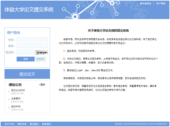 1、 博士后論文提交:新版論文提交系統(tǒng)不僅支持學(xué)士、碩士、博士的論文提交,還增加了博士后的論文提交功能,并且針對博士后論文元數(shù)據(jù)特點,專門設(shè)置了博士后的提交單和編目信息。