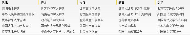主要收錄國內(nèi)各大出版社各個領(lǐng)域的權(quán)威工具書,目前已經(jīng)收錄了《中國大百科全書》、《漢語大詞典》、《辭?!返葯?quán)威工具書;